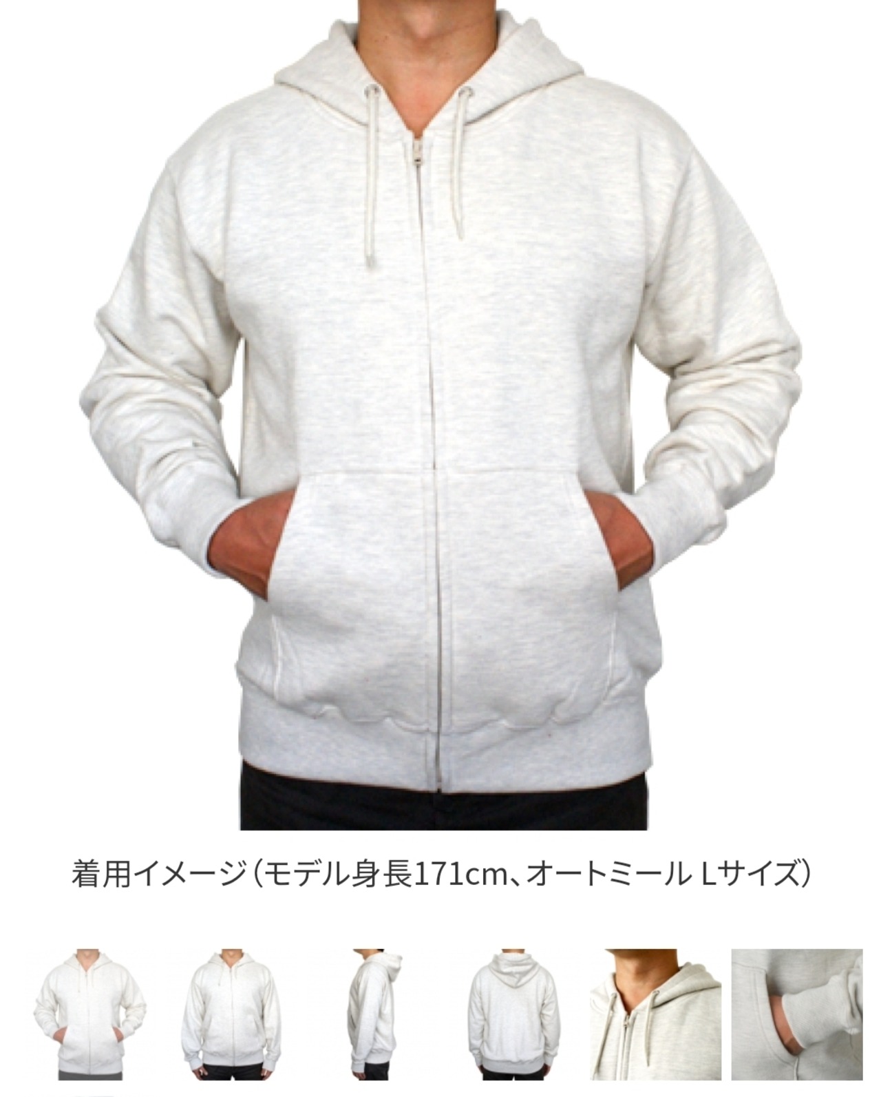10oz でしっかりした厚めの生地で裏側はパイル生地です。身体を動かして汗をかいてもサラリとした肌触り◎