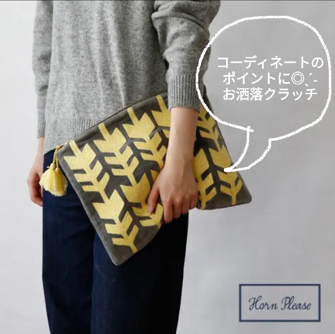 ❒ ヴェルヴェット素材のクラッチポーチ 【 Horn Please 】❒